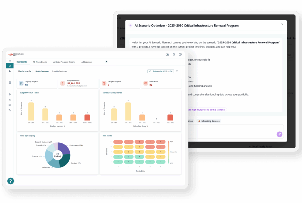 The Essentials suite unlocks greater value by bringing capital planning and project execution into one connected solution, purpose-built for the needs of local and regional agencies. From prioritizing the right projects, and building multiyear CIP program to managing budgets, schedules, risks, and field activity, every feature supports the full capital life cycle. Designed for lean teams and high accountability, Essentials helps agencies deliver with greater transparency, speed, and control.