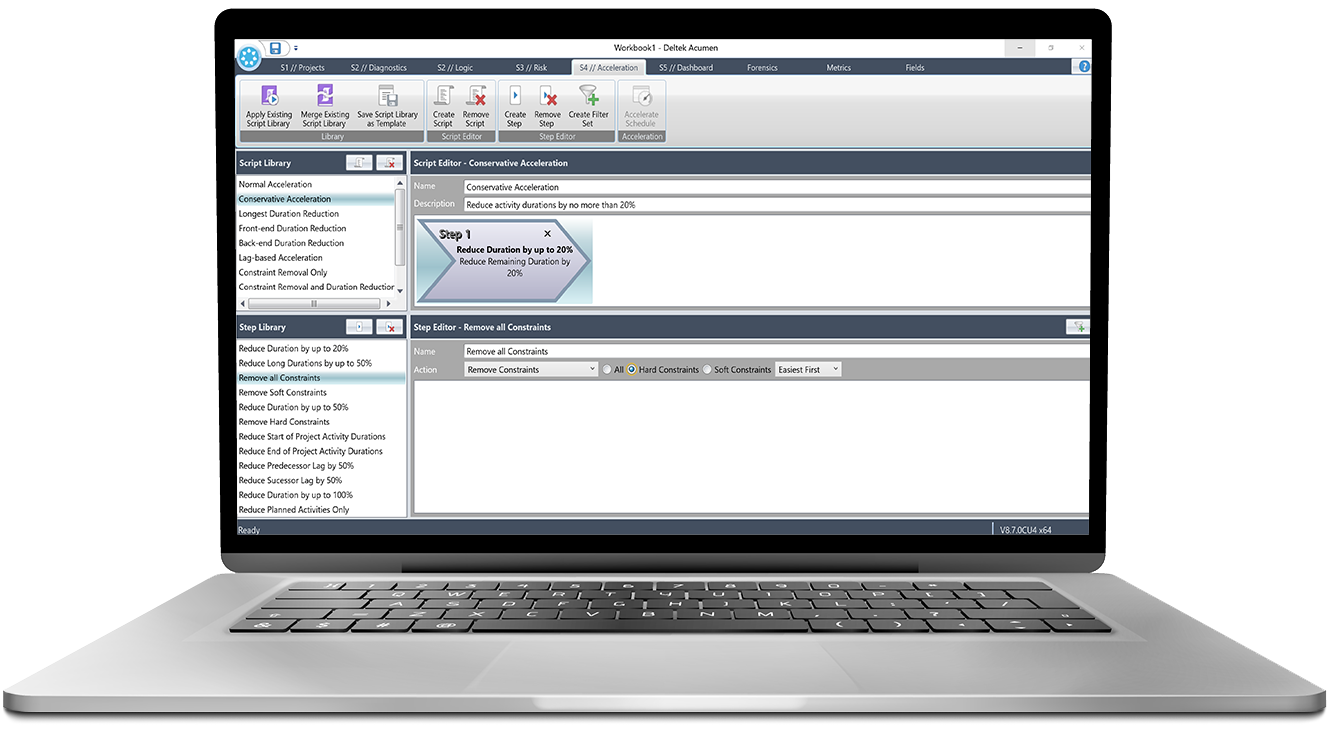 Use the Acumen toolset to create great schedules, identify and manage the risks and accelerate completion dates to meet critical project milestones. The Acumen tool suite takes project analysis beyond a simple checklist and resolves project shortcomings in minutes by identifying issues using Acumen Fuse. Acumen Risk provides a easy to use, integrated schedule and cost risk analysis. Once you have created a risk adjusted schedule then Acumen 360 supports completing your projects faster by evaluating schedule scenarios utilizing an interactive acceleration engine.