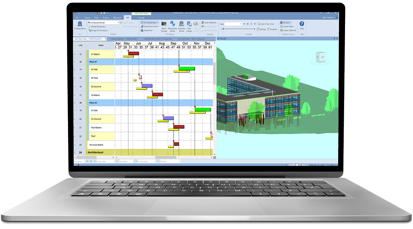 Create a 4D schedule by easily integrating your schedule with an IFC 3D Model.